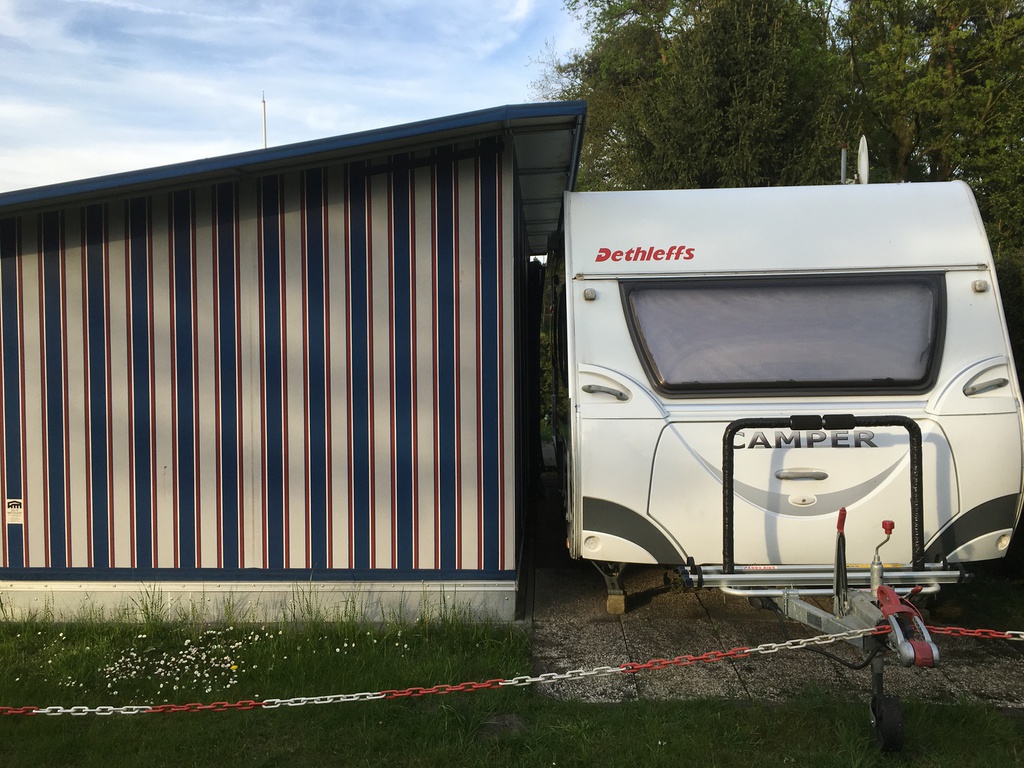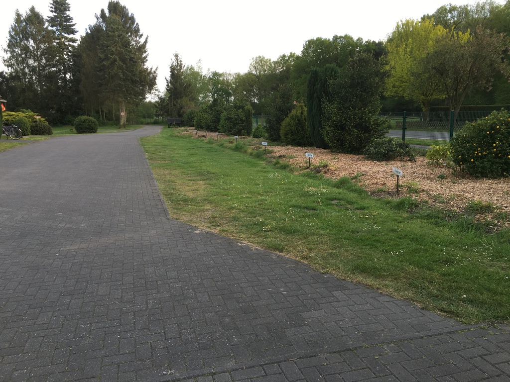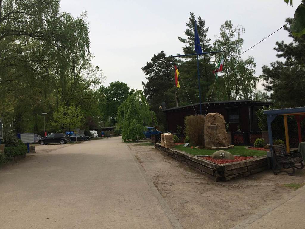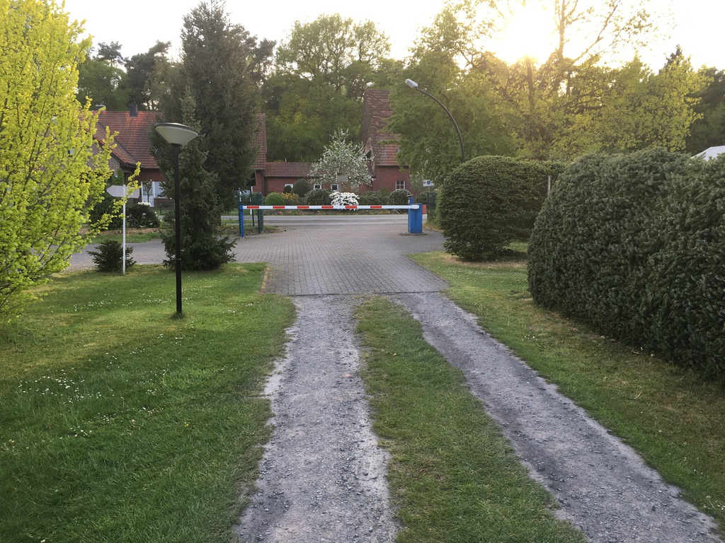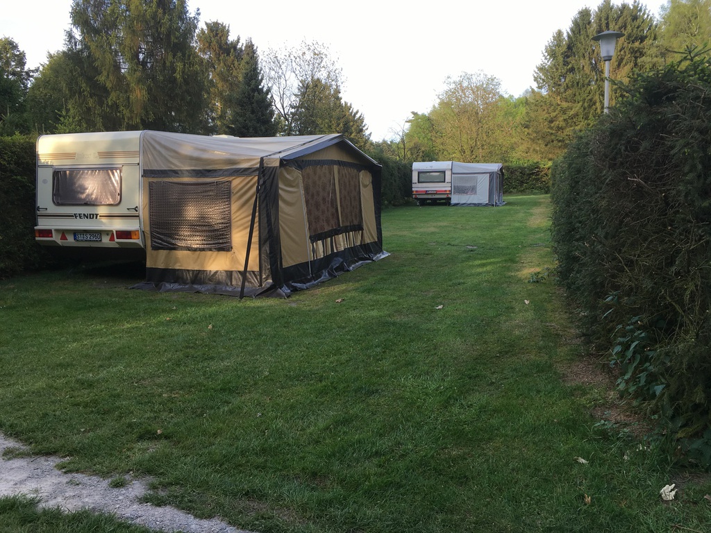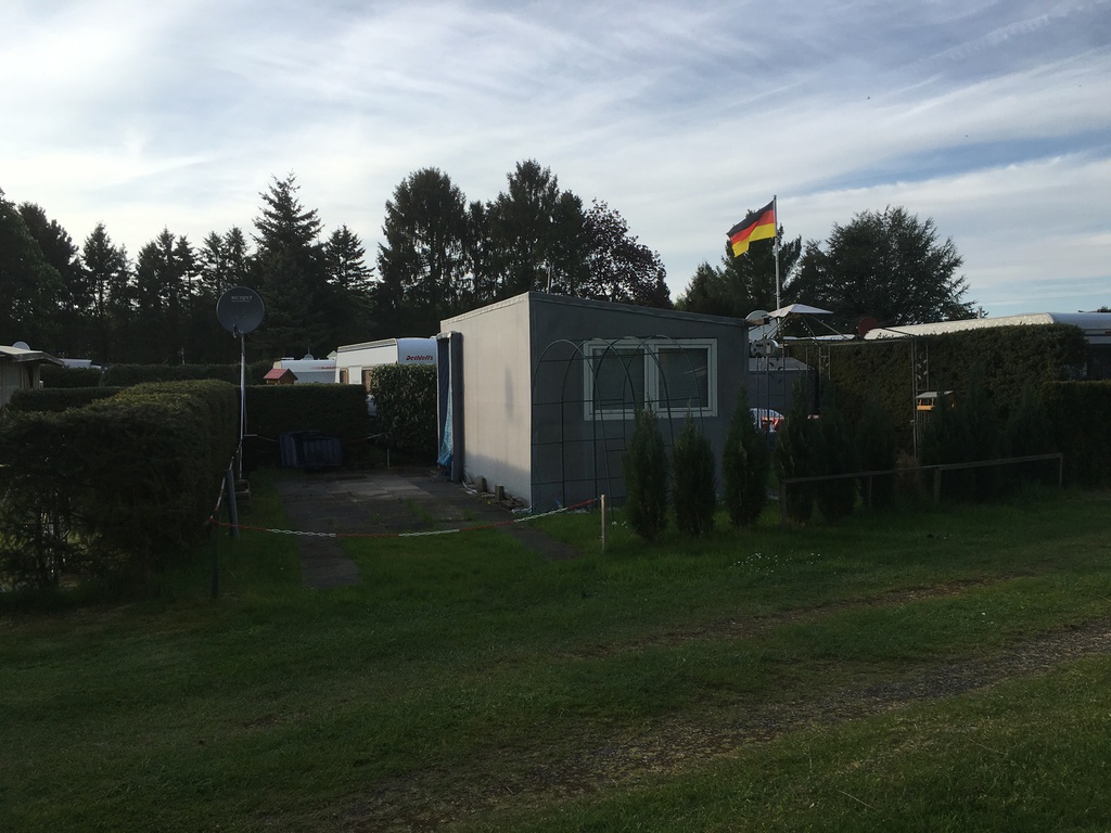 Nachdem ich schnell ein Anmeldeformular ausfüllen musste (Name und Adresse) und mir div. Duschmarken gekauft habe, hat Herr Sickelmann mich direkt zu meinem Platz geführt. Auf Grund der Tatsache dass im Augenblick noch nicht so viel los ist konnte ich mir meinen Platz allein aussuchen. Der gesamte Platz hat festen Rasenboden und die einzelnen Stellplätze sind Reihenweise mit Tannen bzw. Hecken abgegrenzt. Auf den Zufahrten ist genügend Platz sodass auch ich mit meinem Gefährt nicht Rangieren musste. Leider gibt es auf dem gesamten Gelände kein WLAN. Dieses ist nur im Bereich der Rezeption als offenes verfügbar, was aber Mist ist. Man sollte sein Eigenes bei haben.