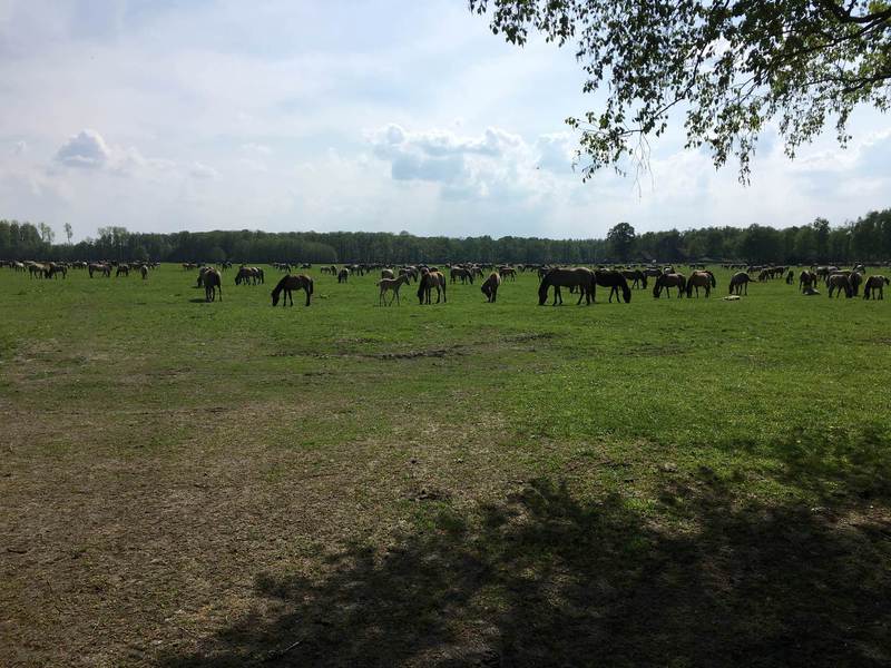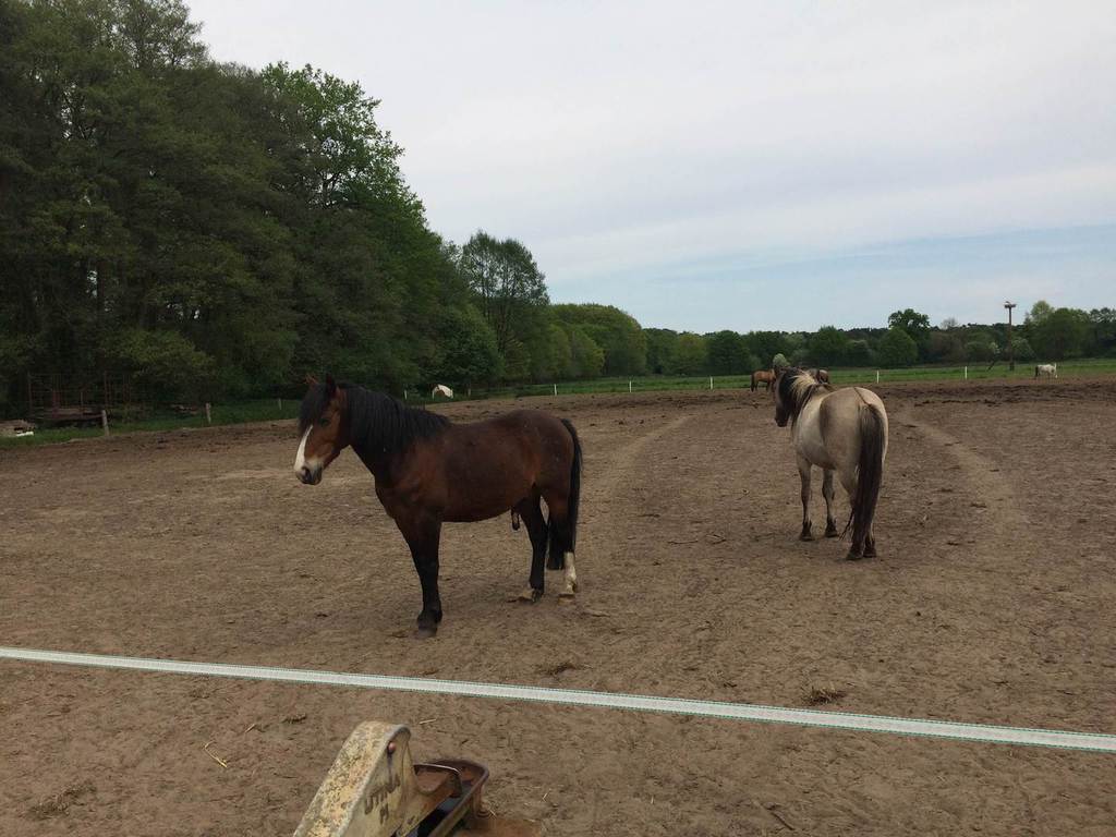 Die Pferde leben gut 2km fernab jeder Hauptstrasse und werde dort nicht an den Menschen gewöhnt. Sie haben ca. 400 ha Land zur Verfühgung was auch weitläufigen Weiden und Wald besteht. Auf den Bilder sieht man gut wie weitläufig es dort ist.